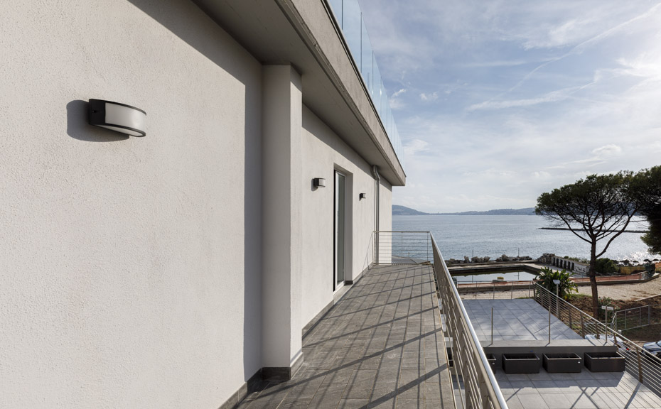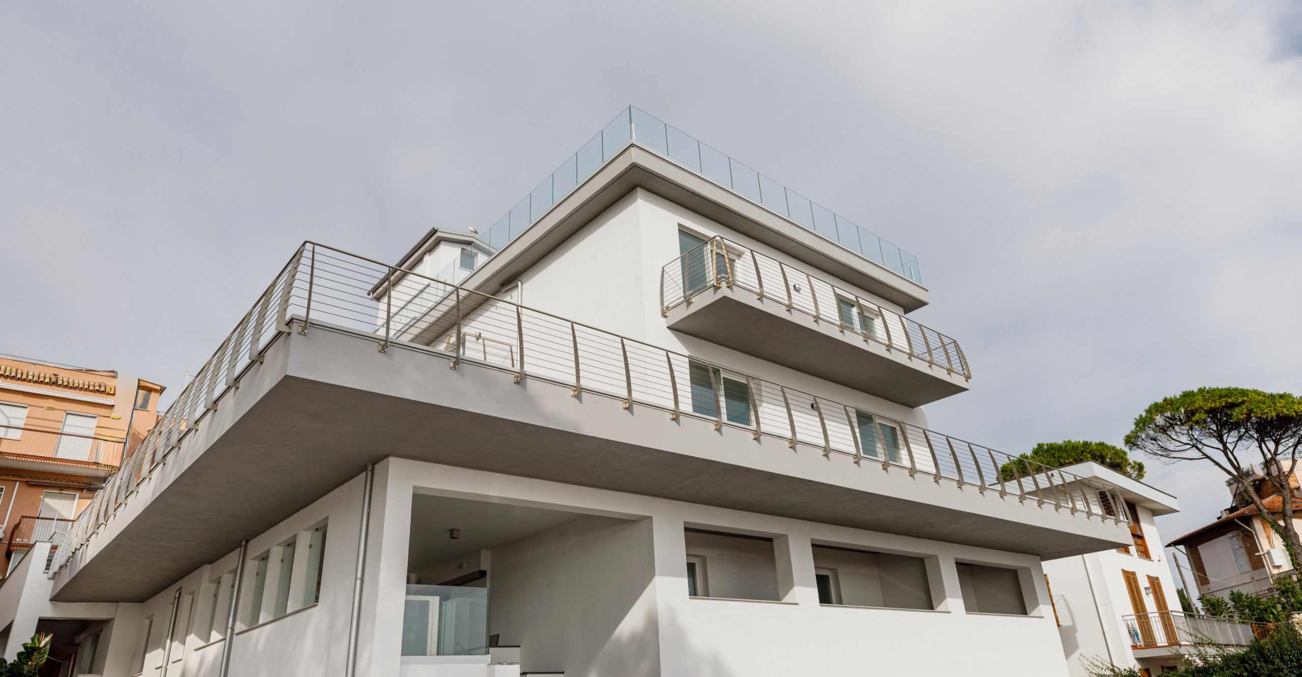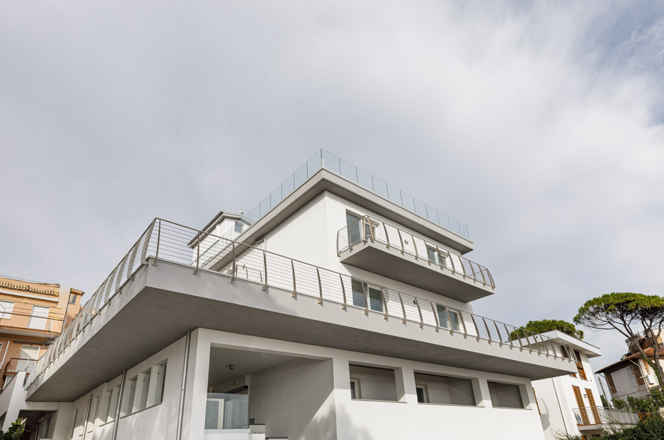 L’intervento ha rappresentato un’occasione preziosa per restituire funzionalità, valore estetico e coerenza architettonica ad un edificio residenziale in dialogo diretto con il paesaggio costiero, trasformando un’operazione tecnico-immobiliare in un risultato di forte espressività architettonica, improntato a leggerezza, armonia e decoro urbano.