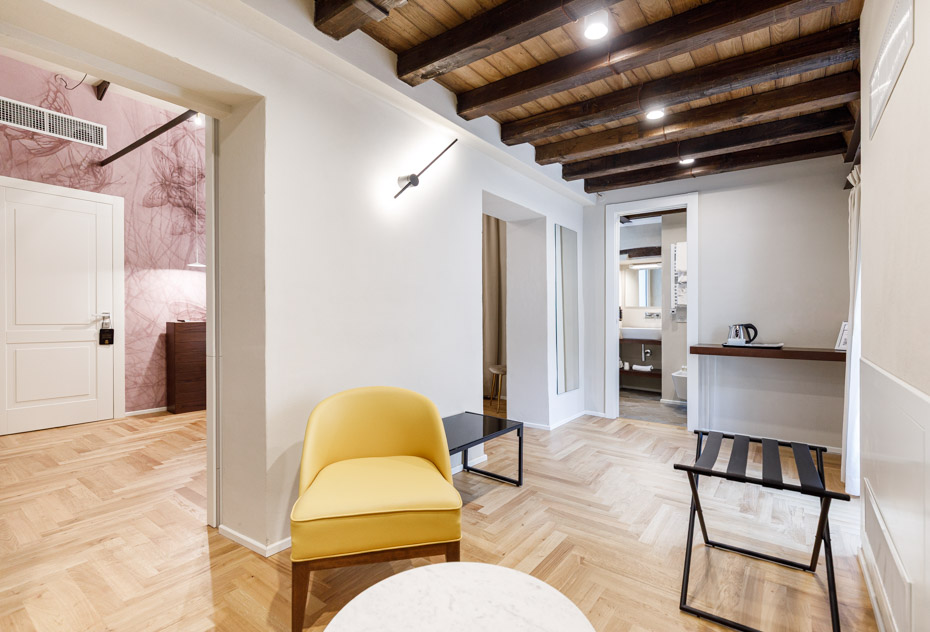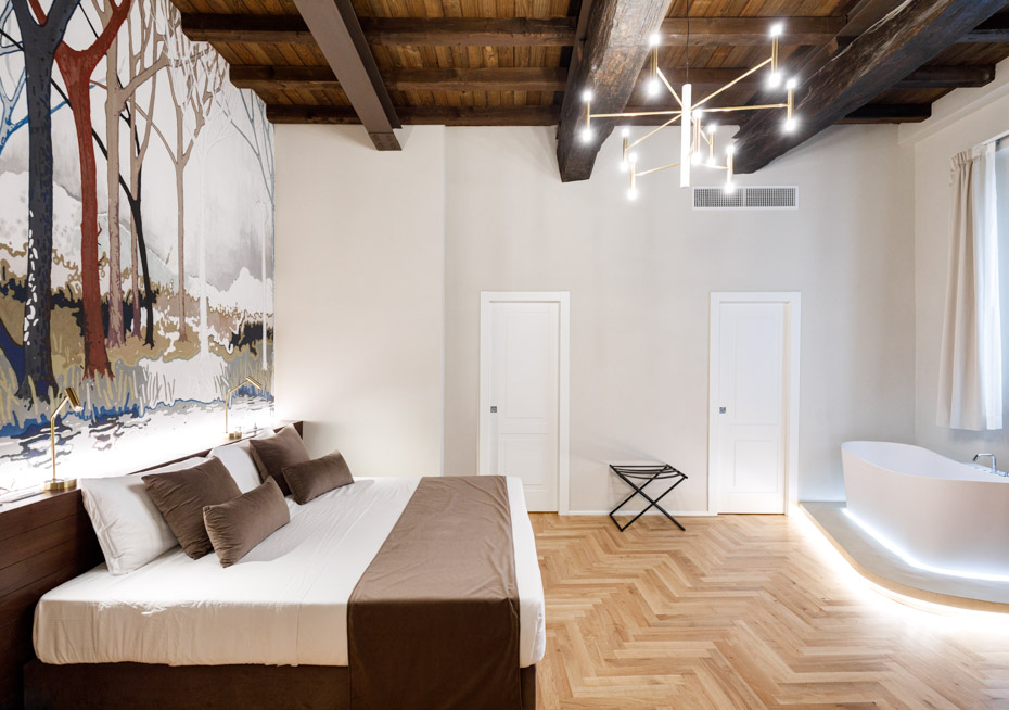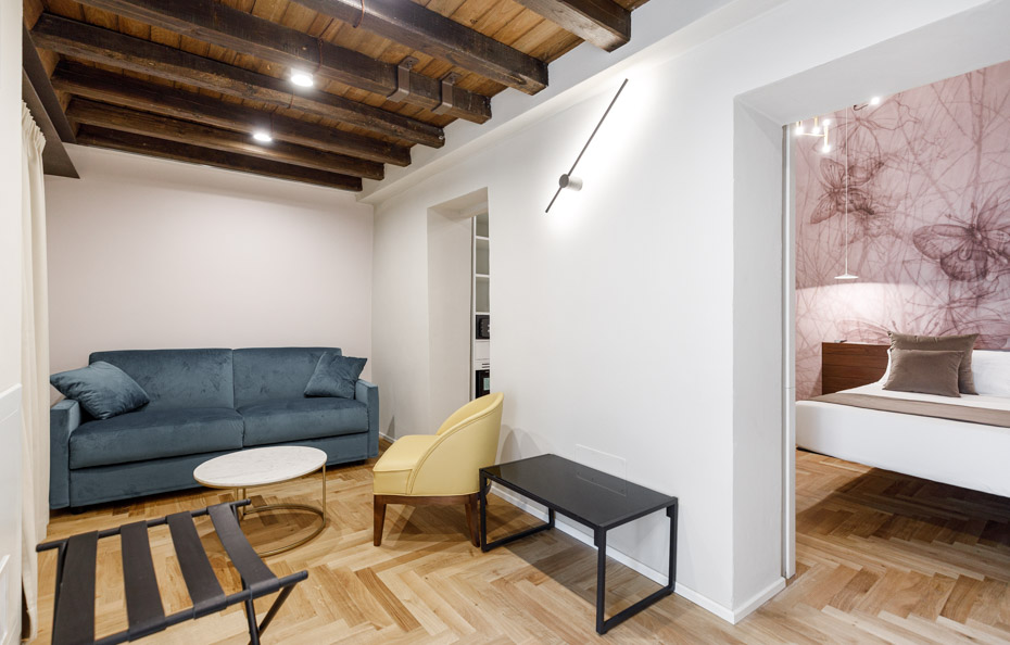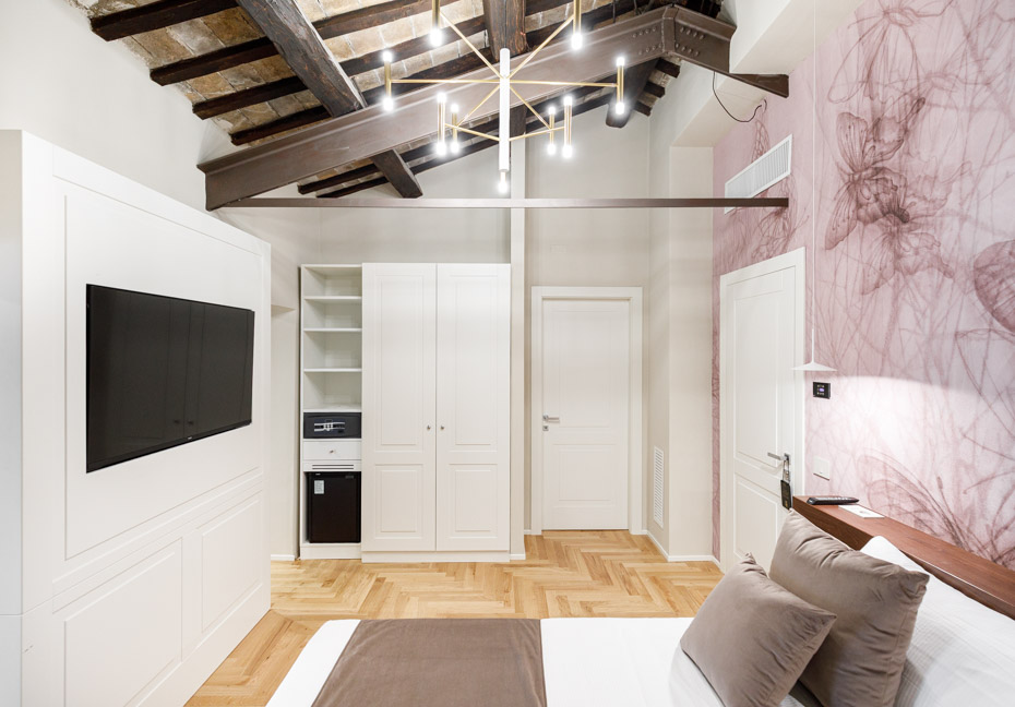 “Gli alloggi hanno un carattere sobrio ma elegante” – ci spiega il geometra Andrea Petrangeli, direttore di cantiere – “che ben si sposa con la storia del fabbricato. Tutti gli interventi realizzati puntavano al massimo rispetto del valore storico dell’edificio e alla conservazione degli elementi originari, insieme al necessario adeguamento impiantistico e tecnologico della struttura storica”.