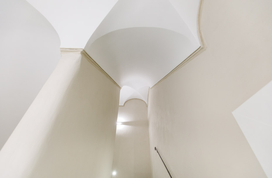 Per i nuovi intonaci interni, posa della malta strutturale webertec BTcalceG rasata in alcune porzioni con webercalce rasatura, un rasante naturale con una finitura civile di colore beige, in altre con webercalce rasatura L, una lisciatura extrafine di colore bianco.