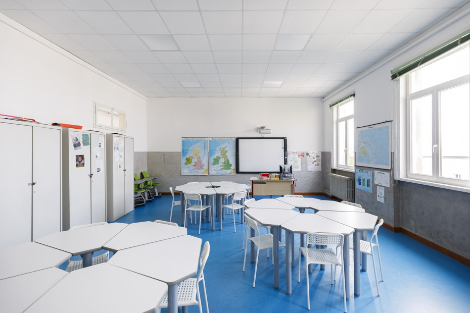All’interno degli edifici scolastici, le lastre Gyproc Wallboard, Gyproc Hydro, Gyproc Fireline e Gyproc DuraGyp Activ’Air®, abbinate ai controsoffitti modulari Eurocoustic Tonga A 22 e ai pannelli isolanti Isover Arena32 e Isover Arena34, garantiscono prestazioni eccellenti in termini di isolamento acustico, resistenza meccanica, sicurezza sismica e protezione antincendio.