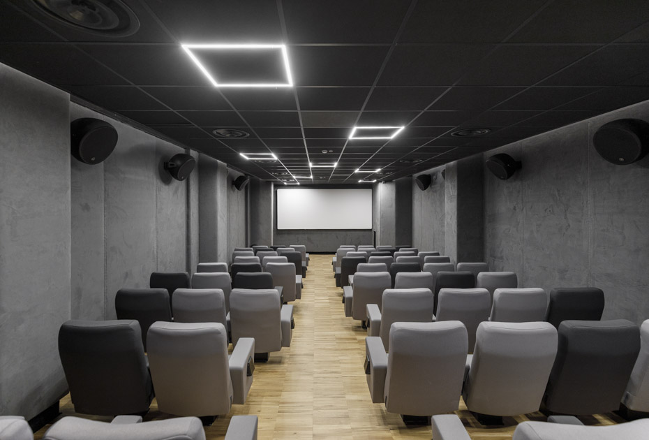La sala più piccola è stata immaginata come un salotto accogliente e funzionale: uno spazio di eccellenza per eventi di piccole dimensioni e rassegne d’autore, pensato per una clientela attenta e ricercata. La sala grande, in grado di ospitare fino a 70 persone, è invece rivolta a gruppi più numerosi ed è concepita con dotazioni tecnologiche di ultima generazione.