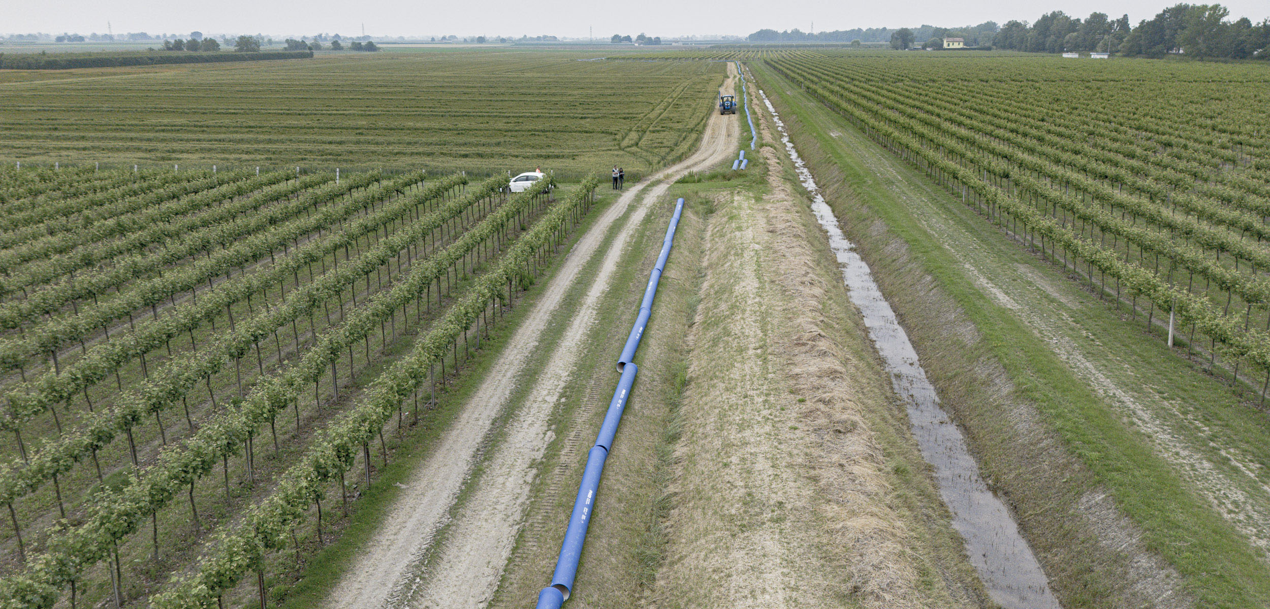 Posa di tubazioni specifiche per reti di irrigazione, con l’obiettivo di aiutare centinaia di agricoltori in un territorio strategico per la Romagna.