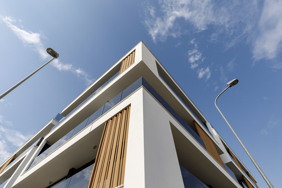 La trasparenza diventa inoltre elemento qualificante nel grande progetto urbano Walther-Park a Bolzano, nelle eleganti soluzioni residenziali del complesso Civico 45 a Casamassima e negli interventi dedicati all’ospitalità realizzati a Bacoli, lungo la suggestiva costa flegrea, nei quali i parapetti in vetro contribuiscono a definire un’immagine architettonica contemporanea.